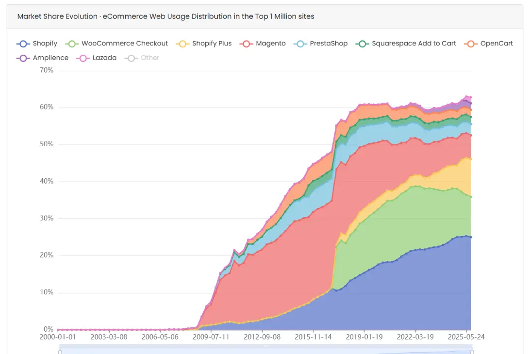 One of our most requested features is finally here. Now, you can see how technology market share has changed over time—giving you not just a snapshot, but a full story of growth, decline, and adoption patterns across industries.