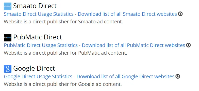 We'll also be tracking what ad platforms have direct and reseller relationships with websites as shown on a profile like https://builtwith.com/dailymail.co.uk