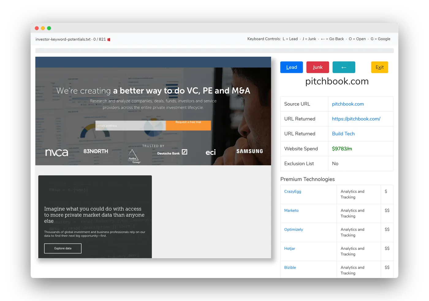 Step 8: Eyeball the homepages in LeadsEye to determine if they are a good fit for the Dataset product (View the Demo on how this works)