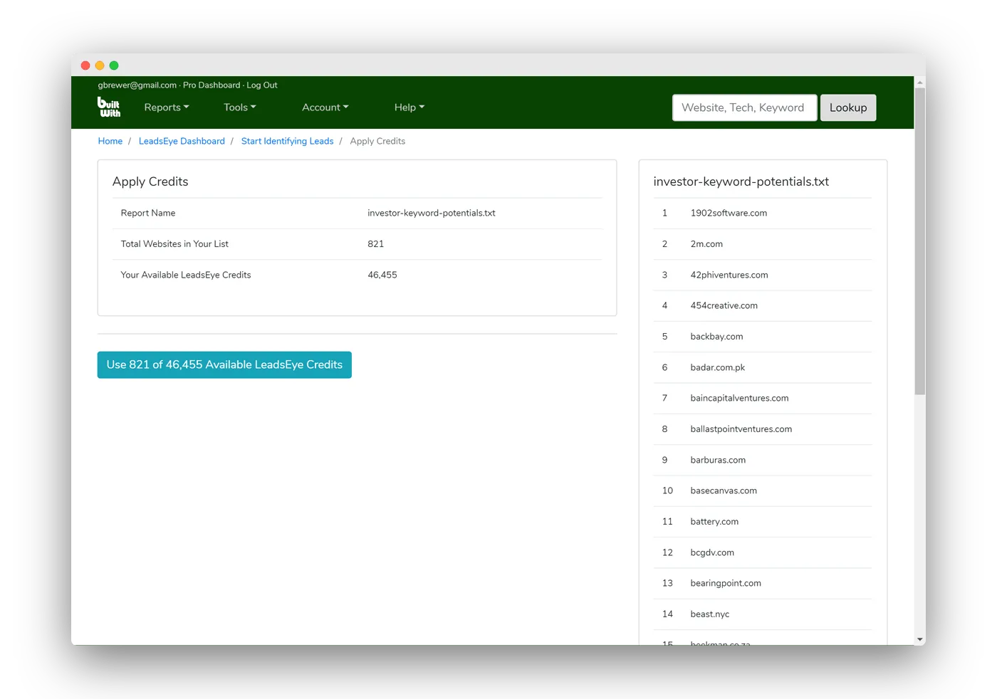 And that's it - a super powerful method or using BuiltWith tools to create a highly targeted lead list.