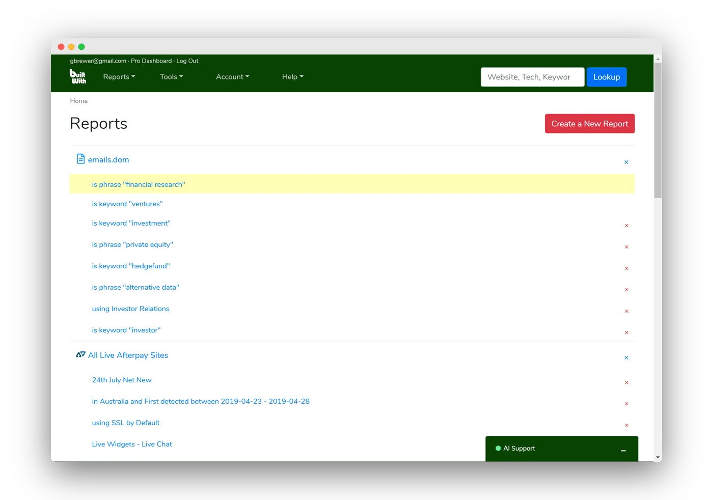 We recently launched BuiltWith Datasets - a new mega technology tool that really suites investment professionals and anyone in related spaces such as hedge funds and other users of Alternative Data.